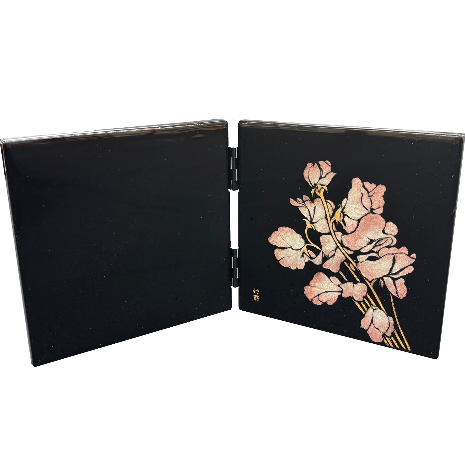 沈金「スイートピー & メッセージ入り」(二枚屏風・ピアノ端材)