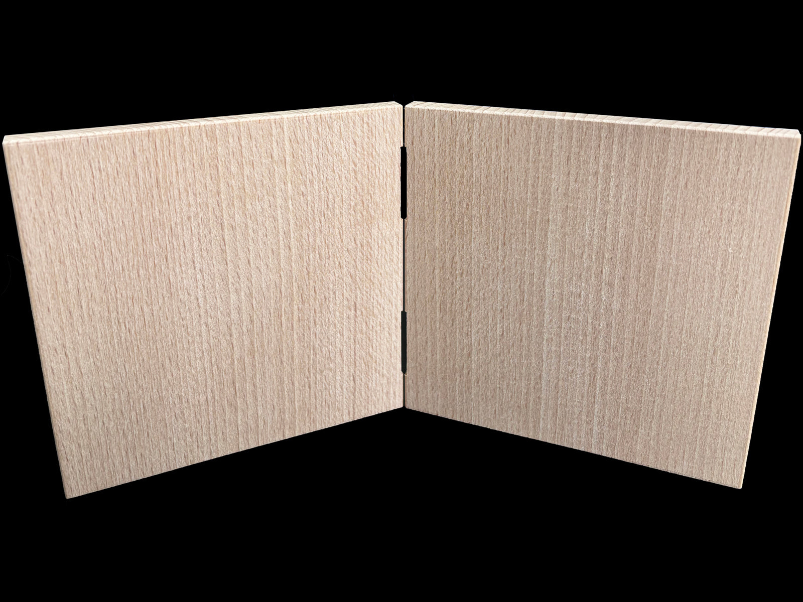 グランドピアノの製造段階で出た端材です。ピアノの製造には世界中で厳選された高品質な木材を天然乾燥、人工乾燥、熟成の合計8年程の乾燥期間を要します。木材の含水率を下げ、安定した含水率にすることで環境変化に強い部材になります。その端材を使用し加工した額に漆を塗り、沈金を施して制作します。