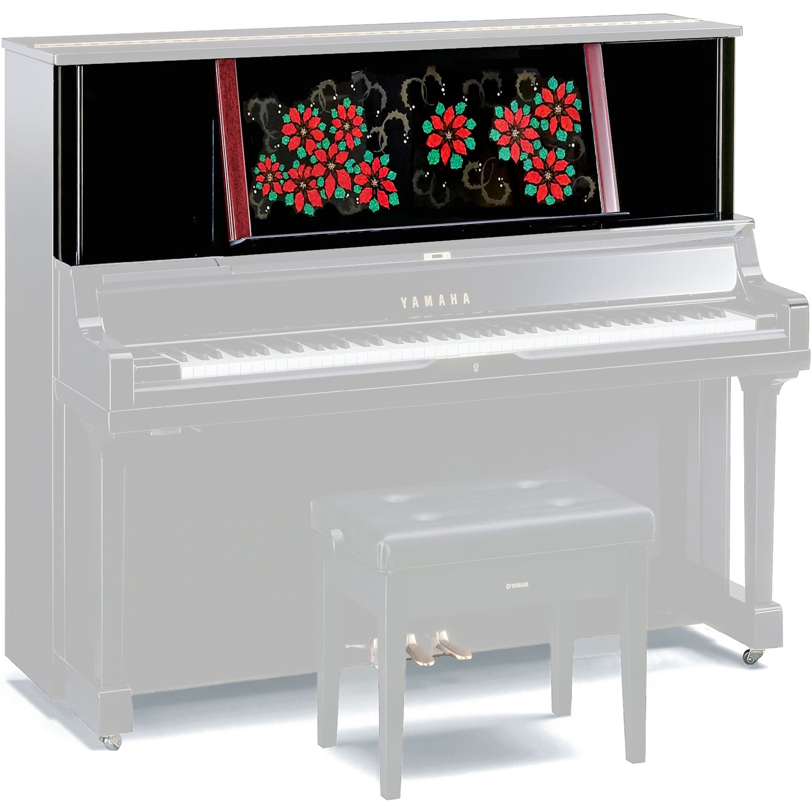 【特長】彩輝光蒔絵「冬の笑美」~クリスマスをイメージしたモデルです。伝統的技法の蒔絵で柊の葉を、京都オパールを使用した新工芸の彩輝光によりポインセチアを表現しています。完全手作業の制作です。完全手作業の制作です。演奏の歓びだけでなく、視覚的な美しさも堪能できるこのピアノは、音楽と工芸の融合を極めた至高の逸品。所有する喜び、演奏する歓び、鑑賞する愉しみのすべてを叶えるアートピースともいえる一台です。